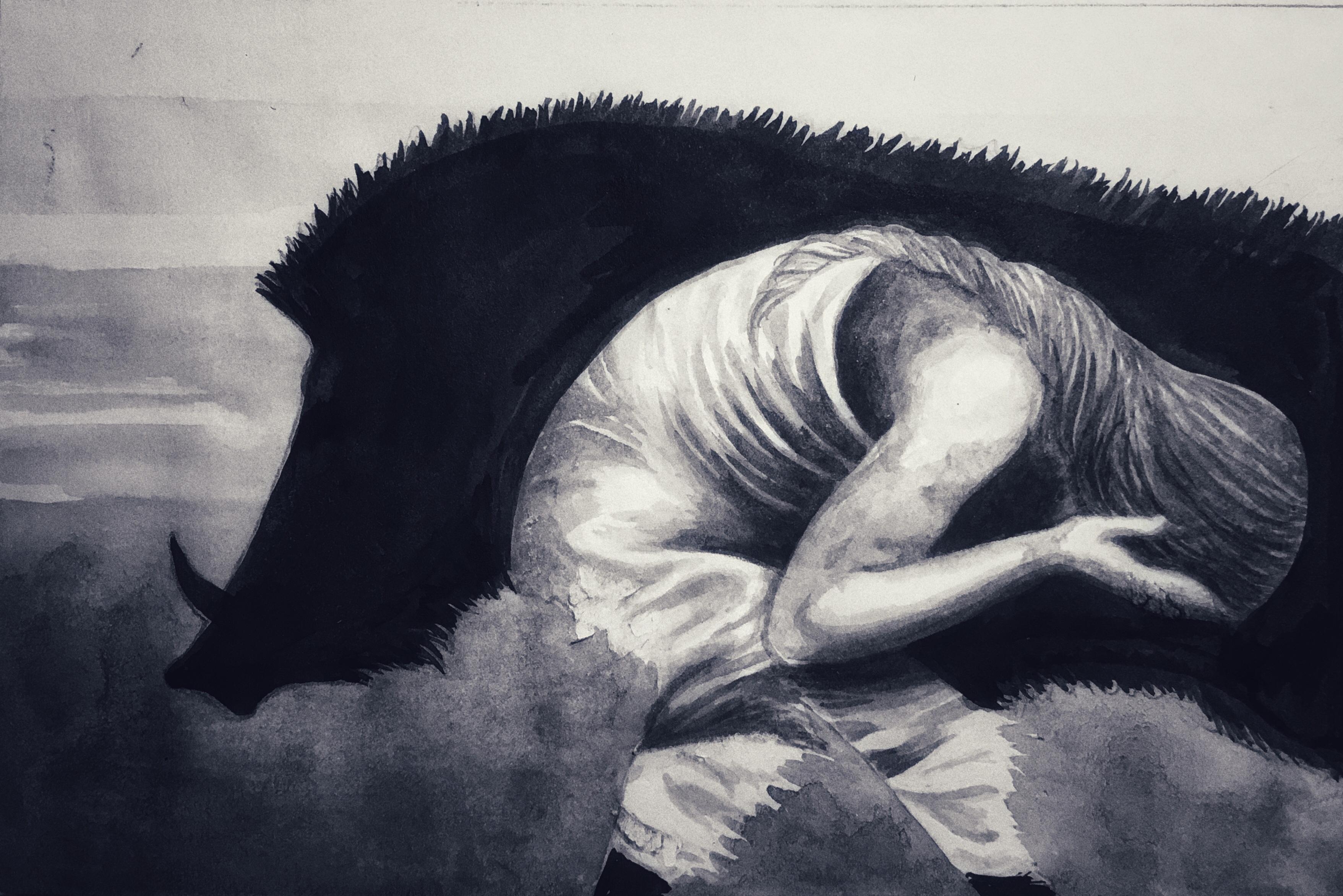 It seems appropriate to begin sharing a selection of these tales with this one. The first letter of the alphabet. Even though I started at G with my mythical Alphabet during our April lockdowns so this image was actually the 21st I drew. Folklore and myth are a long abiding passion for me and also became a refuge during those strange first weeks of uncertainty and isolation.
