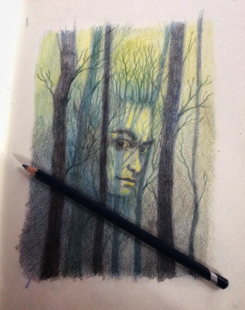 ‘Oh,’ Askafroa laughed, ‘I look the way you imagine me to.’ She extracted her hand and held it out to the girl. In her palm sat a fledgling blue tit.