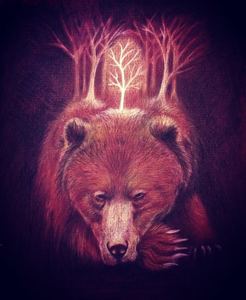 “Must you go?” said the bear. The silver birches shimmered and whispered. There was a strange light in the bear’s eyes. Saila was clothed in innocence. She stood, upright and fearless, her white-blonde hair sparkled silver with frost, her breath surrounding her in a cloak of mystery.