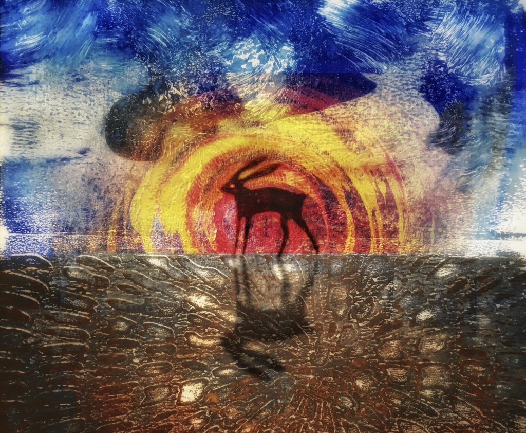 I was struggling to focus on my work a couple of days ago, mostly due to my sorrows having a day of battalions rather than single spies…So I sat down and made something with my scraps of self made collage paper just to be making something. I can’t walk much right now so it seemed the only viable alternative to spending time in the woods. I hoped it would help me find a way back into my work. It did.