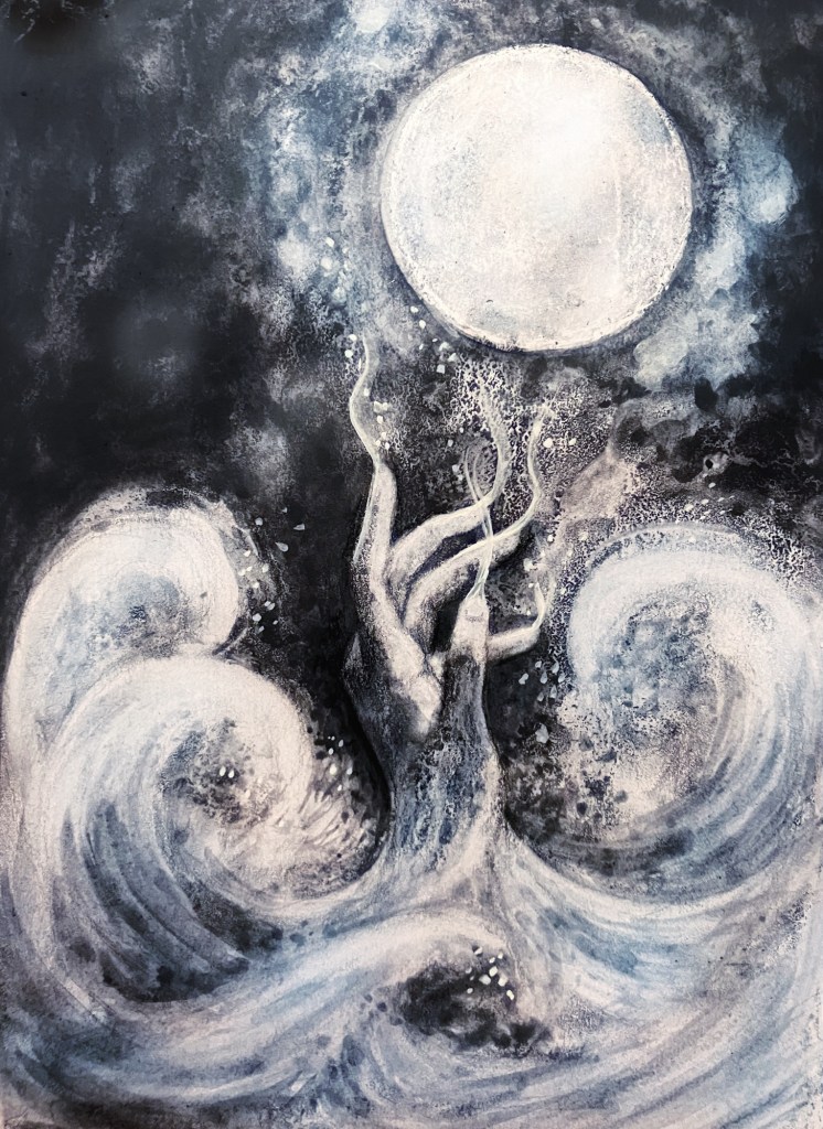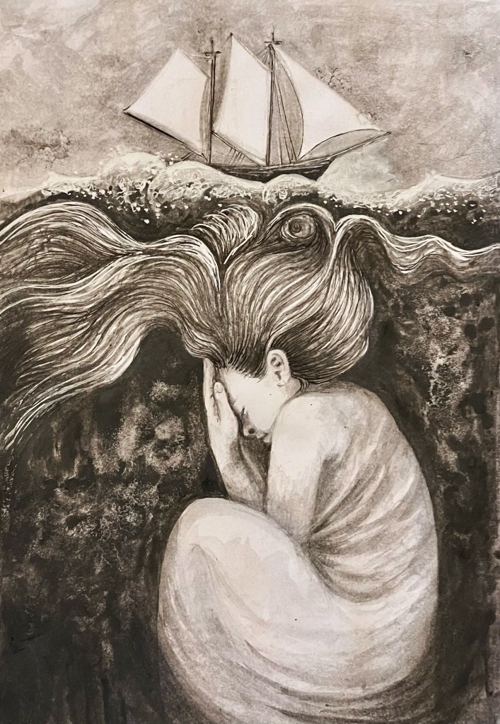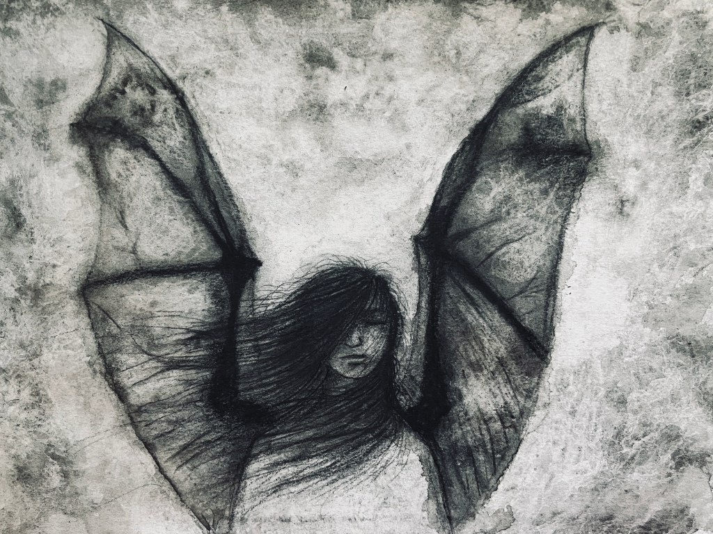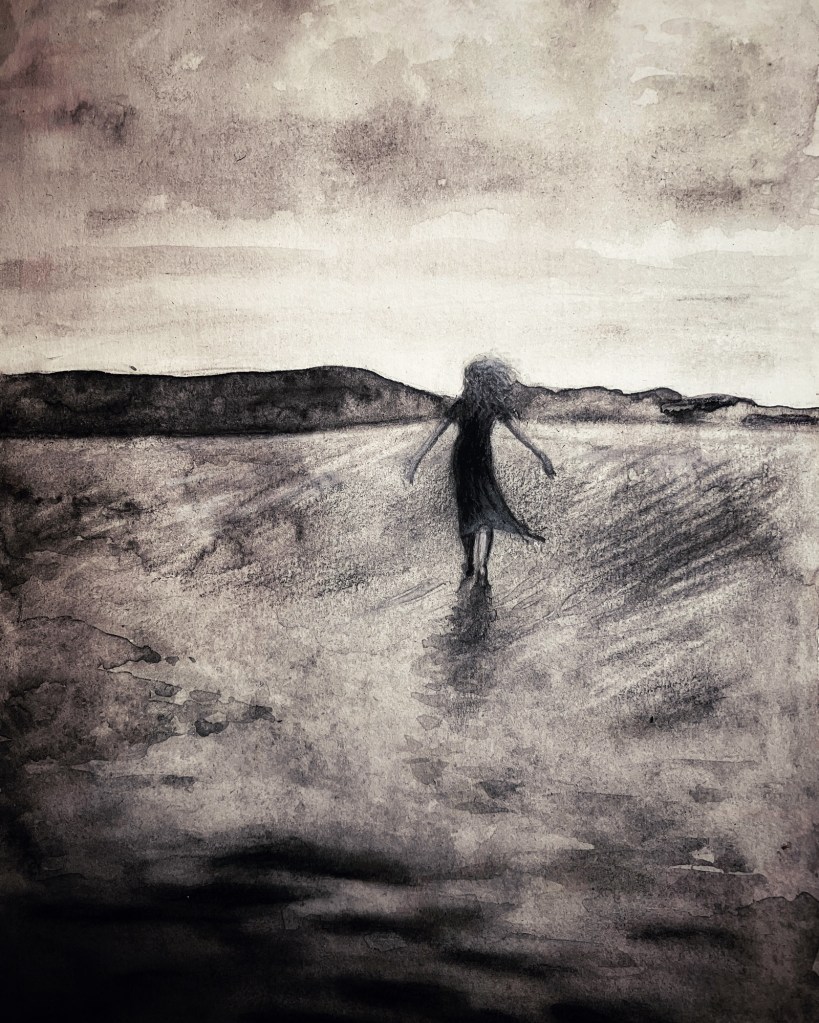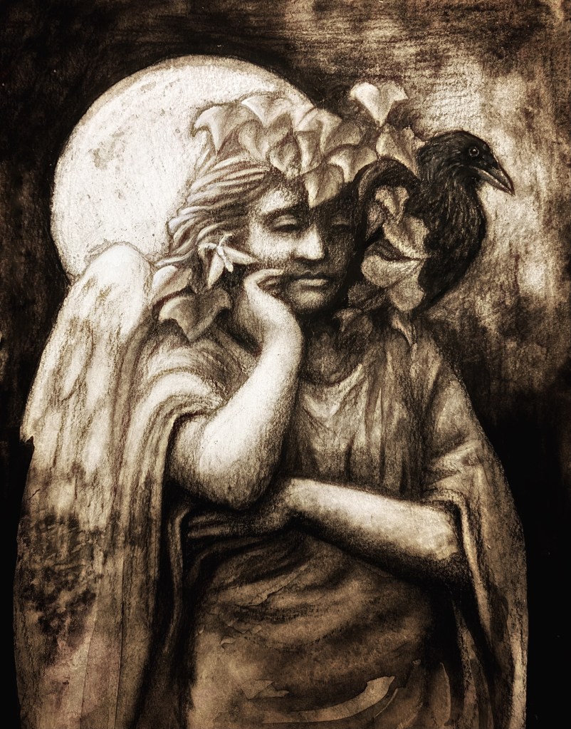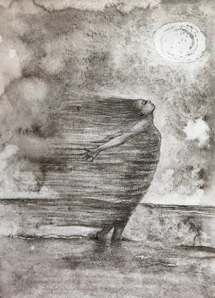 Inktense and charcoal on acid free cartridge (now sold but available as a print)