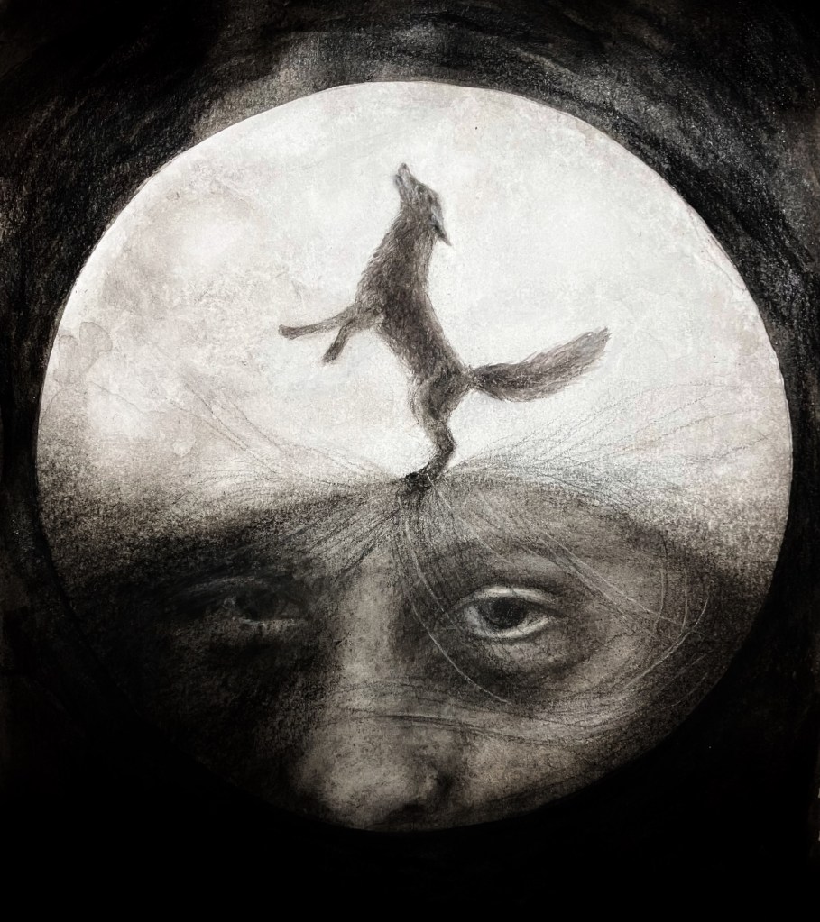 and is travelled by dark feet and dark wings’ Wendell Berry. inktober 2022. Charcoal and liquid charcoal