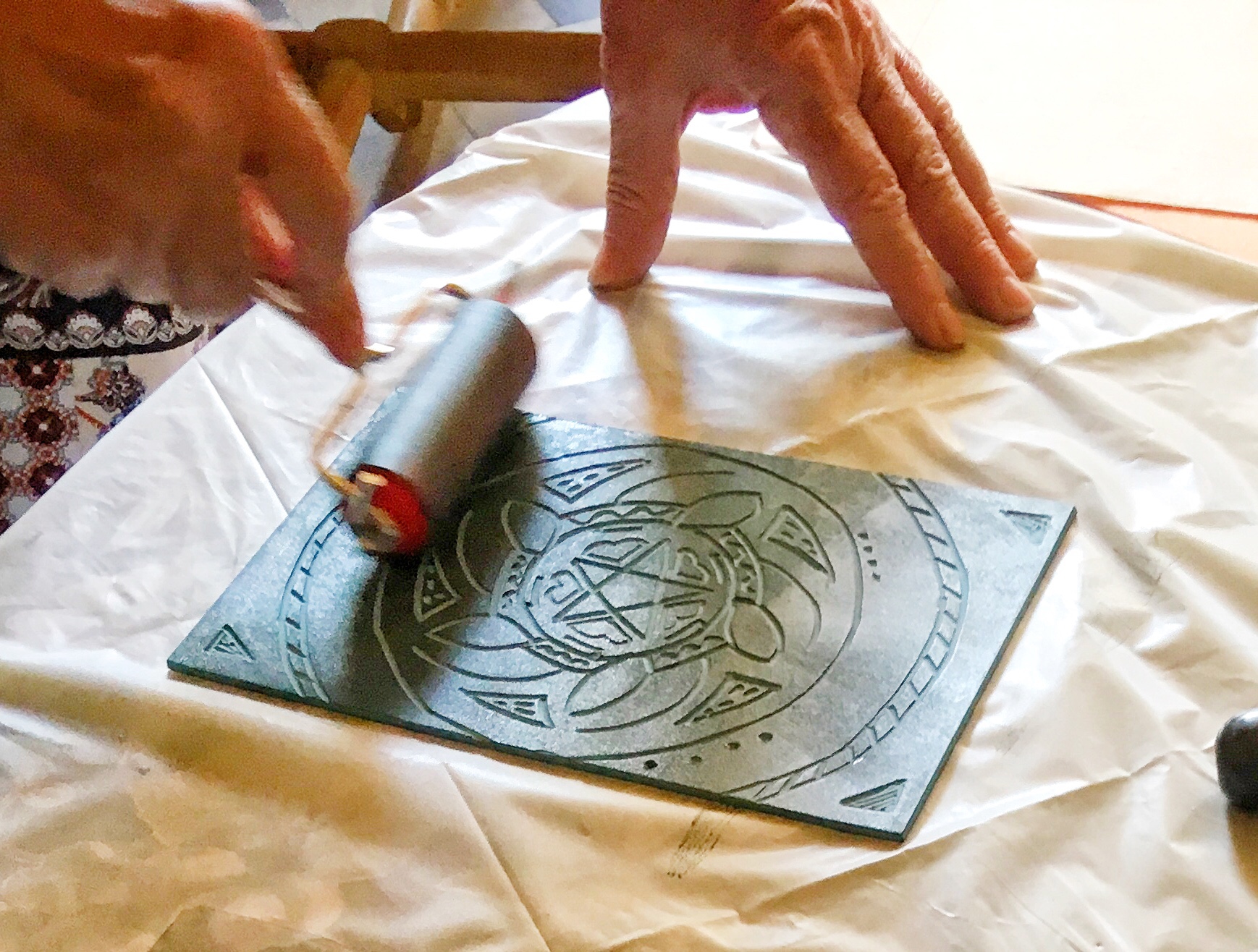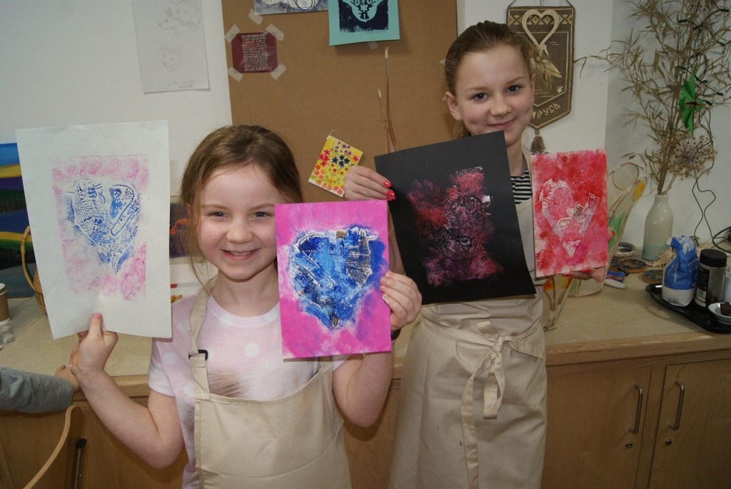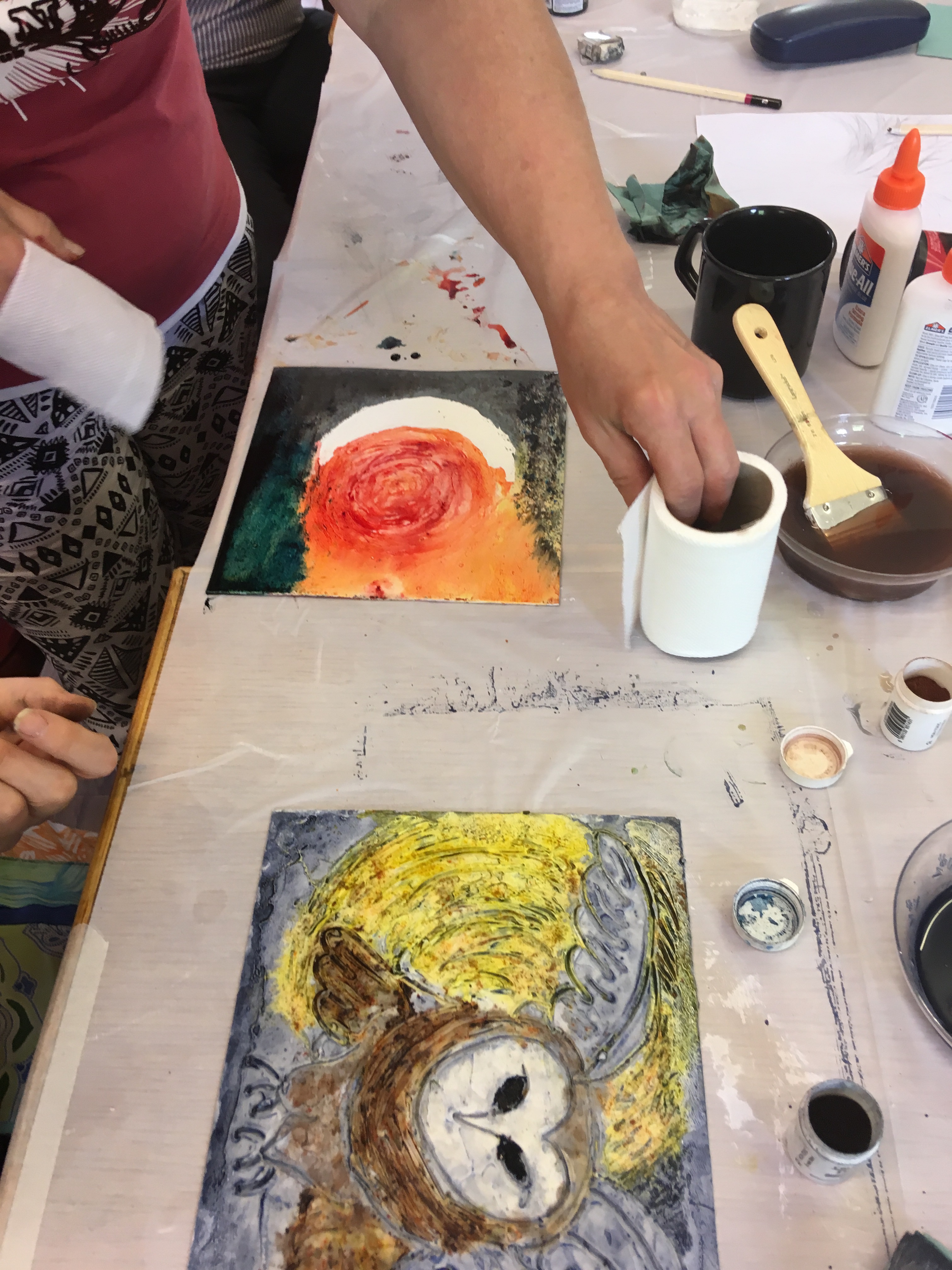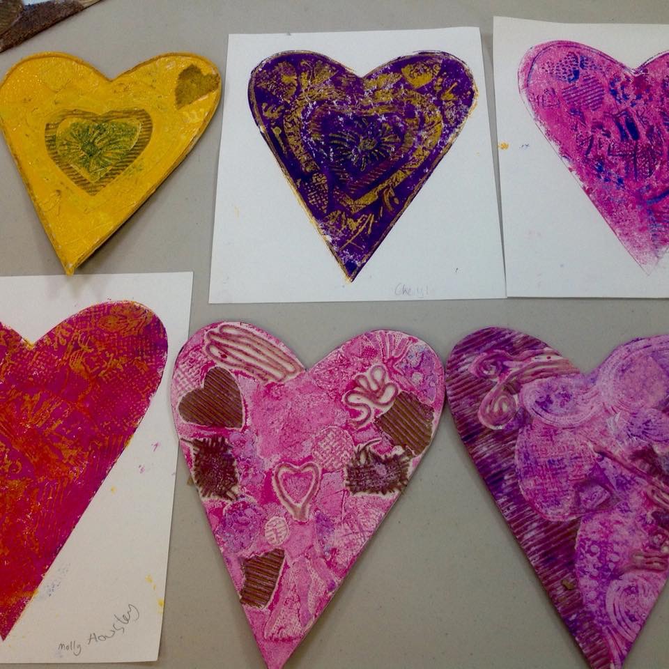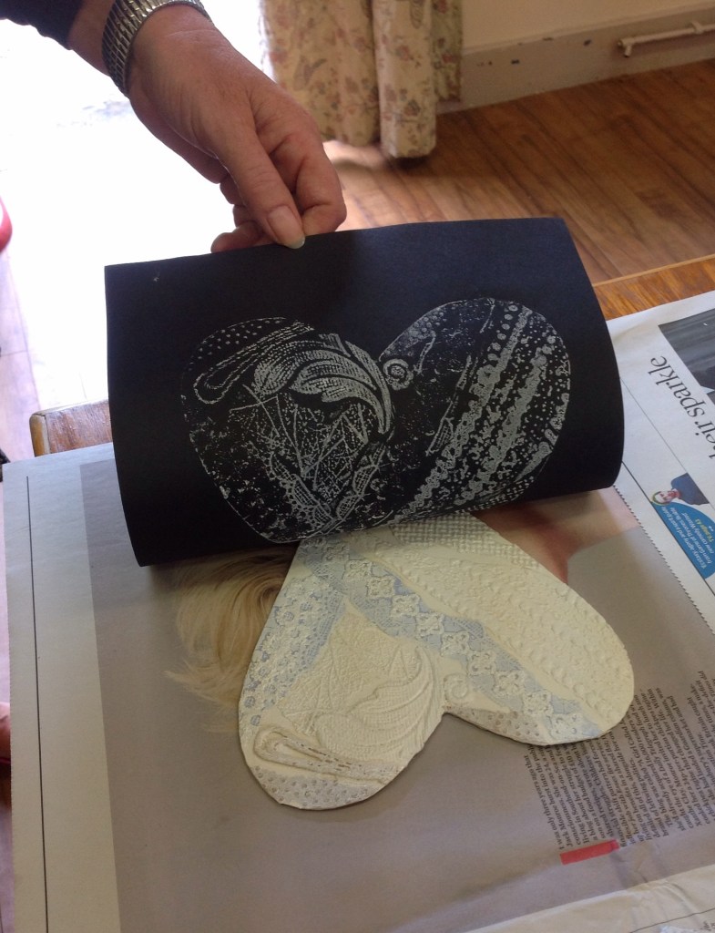 Printmaking: collograph, monoprint with a gel plate and etching without a press.